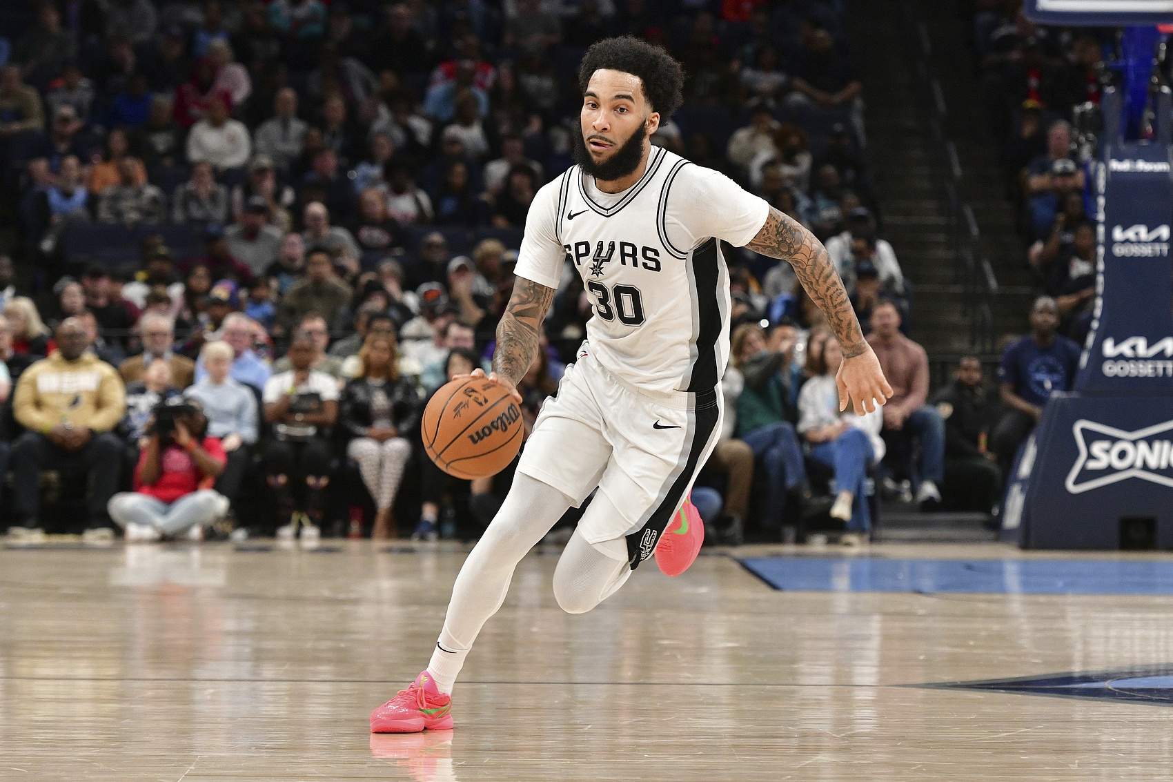 2023年常规赛最后12场,尚帕尼场均轰下12.4分,三分命中率40.3%,场均投进2.4个三分,用表现打动马刺。休赛期,马刺以4年1200万美元续约尚帕尼。